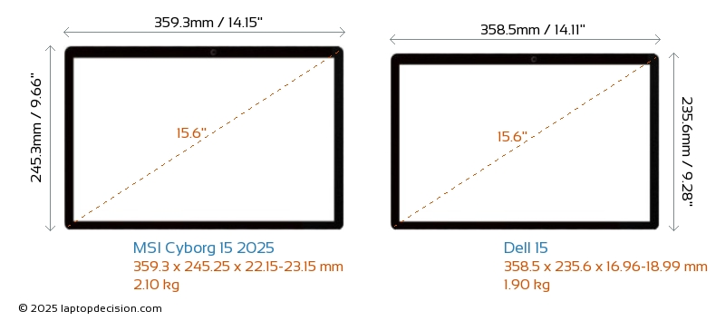 HDMIBoth Cyborg 15 2025 and 15 feature an HDMI port. Cyborg 15 2025 offers 1x HDMI 2.1, while 15 offers 1x HDMI 1.4.