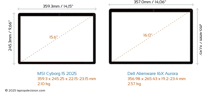 Audio JackBoth Cyborg 15 2025 and Alienware 16X Aurora are equipped with a 3.5mm Audio Jack, providing seamless connection to headphones and speakers.