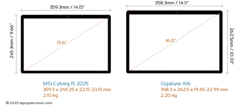 HDMIBoth Cyborg 15 2025 and A16 feature an HDMI port (1x HDMI 2.1) for connecting to external monitors.