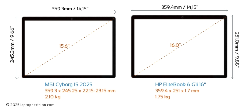 Audio JackBoth Cyborg 15 2025 and EliteBook 6 G1i 16" are equipped with a 3.5mm Audio Jack, providing seamless connection to headphones and speakers.