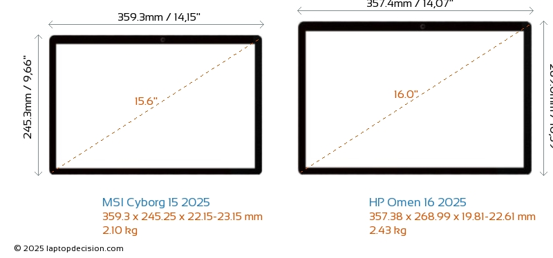 HDMIBoth Cyborg 15 2025 and Omen 16 2025 feature an HDMI port (1x HDMI 2.1) for connecting to external monitors.