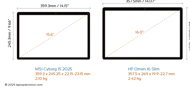 HDMIBoth Cyborg 15 2025 and Omen 16 Slim feature an HDMI port (1x HDMI 2.1) for connecting to external monitors.