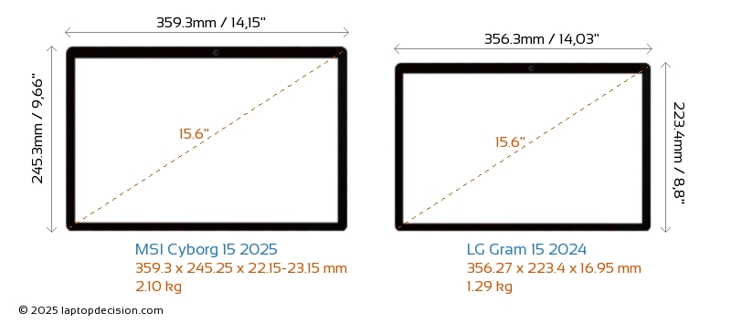 HDMIBoth Cyborg 15 2025 and Gram 15 2024 feature an HDMI port (1x HDMI 2.1) for connecting to external monitors.