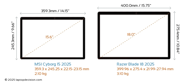HDMIBoth Cyborg 15 2025 and Blade 18 2025 feature an HDMI port (1x HDMI 2.1) for connecting to external monitors.