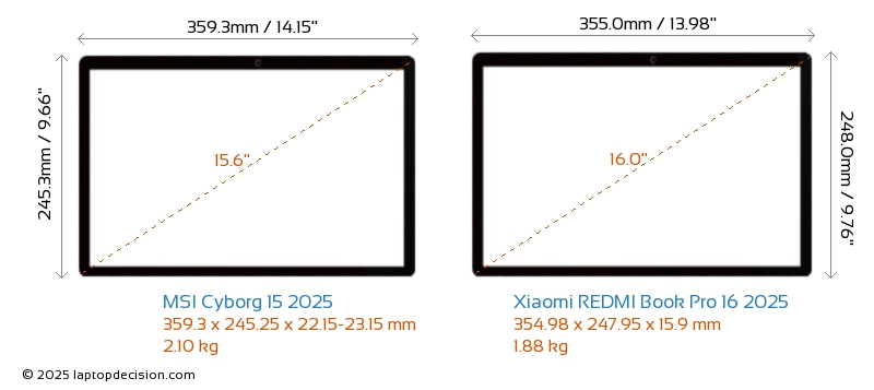 Audio JackBoth Cyborg 15 2025 and REDMI Book Pro 16 2025 are equipped with a 3.5mm Audio Jack, providing seamless connection to headphones and speakers.