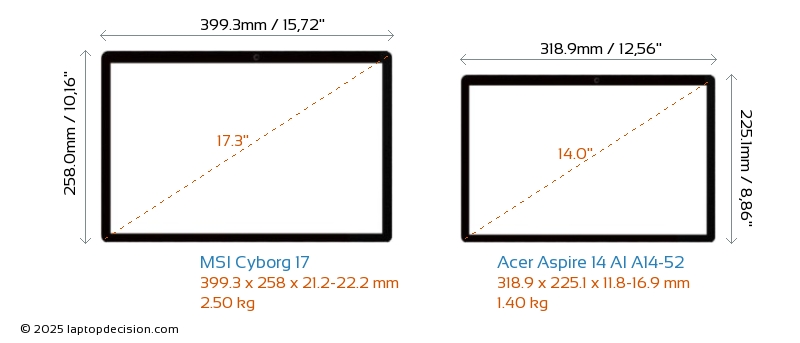 HDMIBoth Cyborg 17 and Aspire 14 AI A14-52 feature an HDMI port (1x HDMI 2.1) for connecting to external monitors.