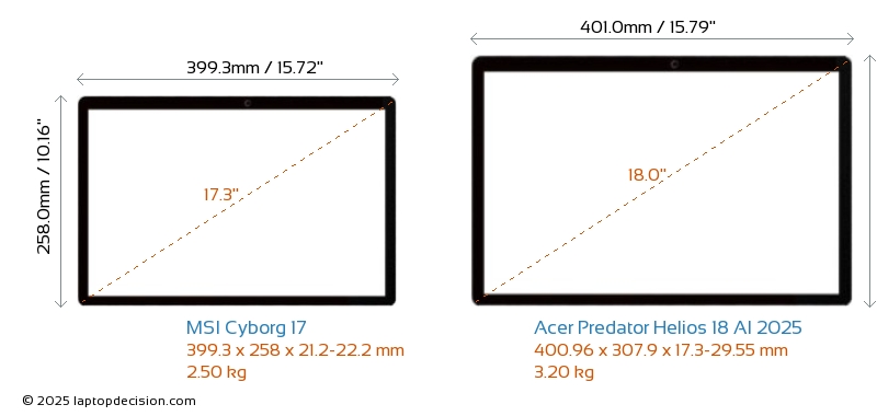 HDMIBoth Cyborg 17 and Predator Helios 18 AI 2025 feature an HDMI port (1x HDMI 2.1) for connecting to external monitors.