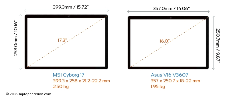 USBBoth Cyborg 17 and V16 V3607 feature 2x USB 3.2 USB-A ports.Both Cyborg 17 and V16 V3607 feature 1x USB 3.2 USB Type-C ports.