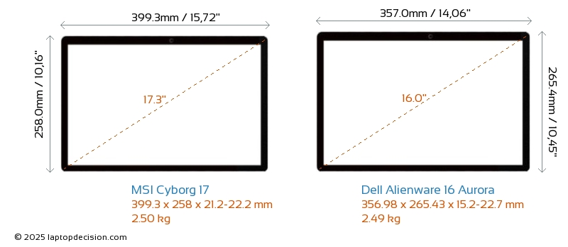 HDMIBoth Cyborg 17 and Alienware 16 Aurora feature an HDMI port (1x HDMI 2.1) for connecting to external monitors.