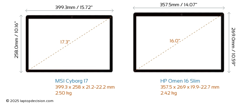 HDMIBoth Cyborg 17 and Omen 16 Slim feature an HDMI port (1x HDMI 2.1) for connecting to external monitors.