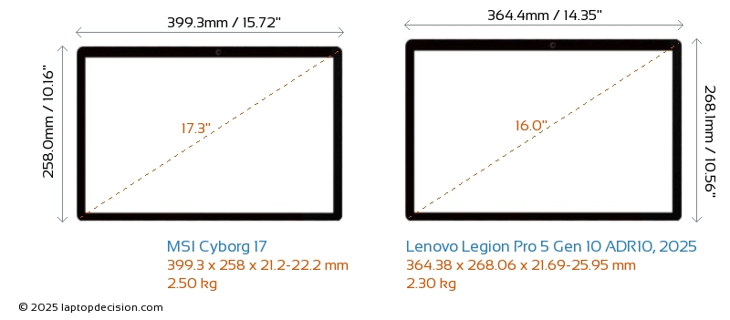 HDMIBoth Cyborg 17 and Legion Pro 5 Gen 10 ADR10, 2025 feature an HDMI port (1x HDMI 2.1) for connecting to external monitors.