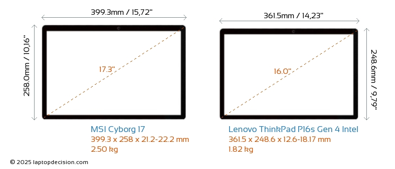 HDMIBoth Cyborg 17 and ThinkPad P16s Gen 4 Intel feature an HDMI port (1x HDMI 2.1) for connecting to external monitors.
