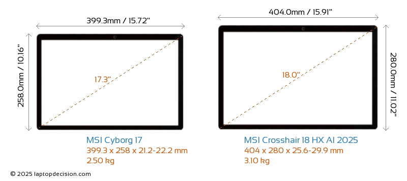 HDMIBoth Cyborg 17 and Crosshair 18 HX AI 2025 feature an HDMI port (1x HDMI 2.1) for connecting to external monitors.