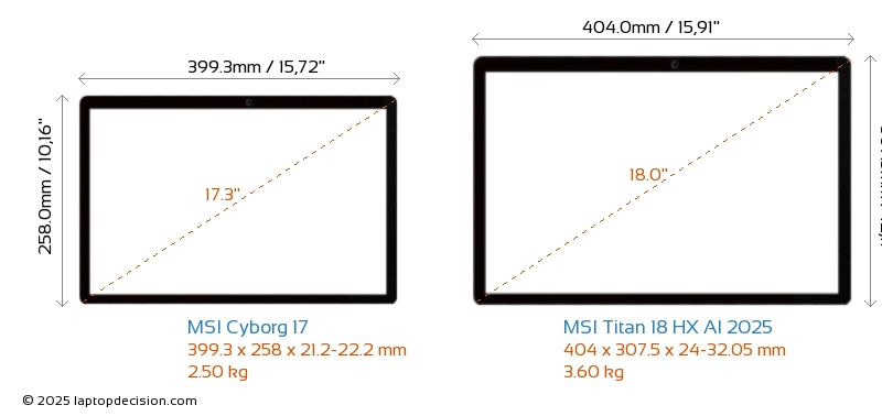 HDMIBoth Cyborg 17 and Titan 18 HX AI 2025 feature an HDMI port (1x HDMI 2.1) for connecting to external monitors.