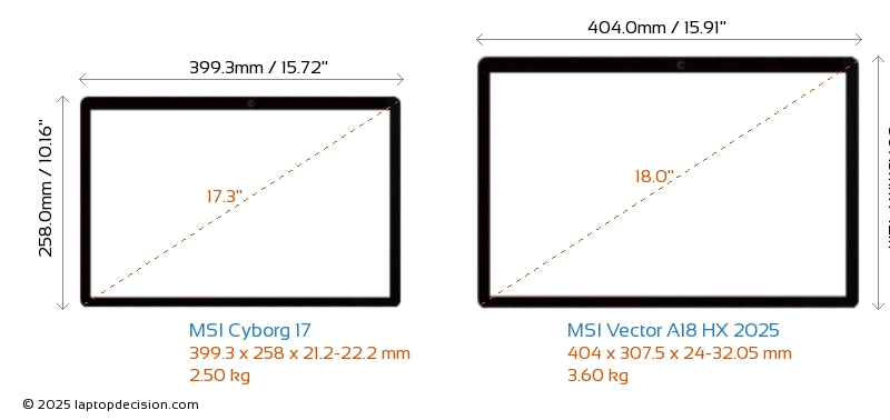 HDMIBoth Cyborg 17 and Vector A18 HX 2025 feature an HDMI port (1x HDMI 2.1) for connecting to external monitors.