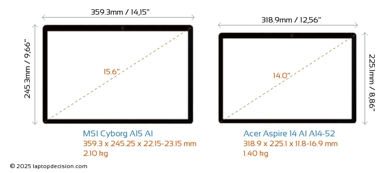 HDMIBoth Cyborg A15 AI and Aspire 14 AI A14-52 feature an HDMI port (1x HDMI 2.1) for connecting to external monitors.