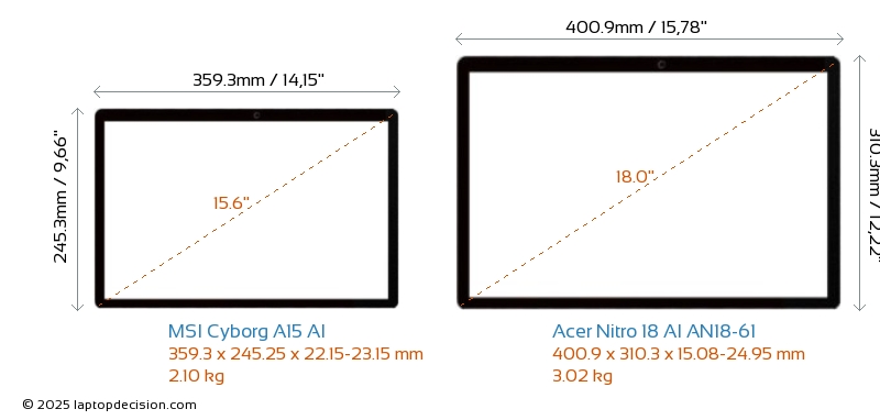 HDMIBoth Cyborg A15 AI and Nitro 18 AI AN18-61 feature an HDMI port (1x HDMI 2.1) for connecting to external monitors.