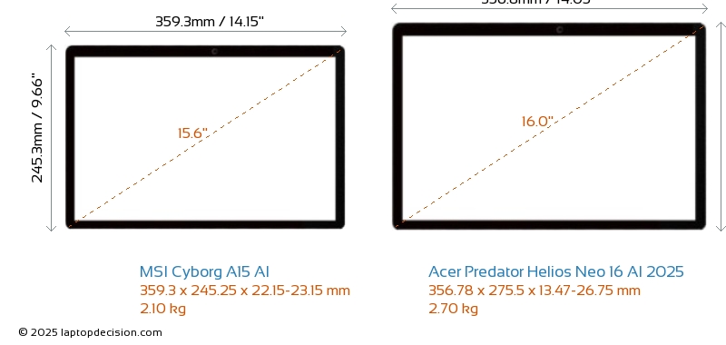 HDMIBoth Cyborg A15 AI and Predator Helios Neo 16 AI 2025 feature an HDMI port (1x HDMI 2.1) for connecting to external monitors.