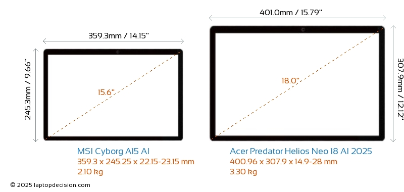 HDMIBoth Cyborg A15 AI and Predator Helios Neo 18 AI 2025 feature an HDMI port (1x HDMI 2.1) for connecting to external monitors.