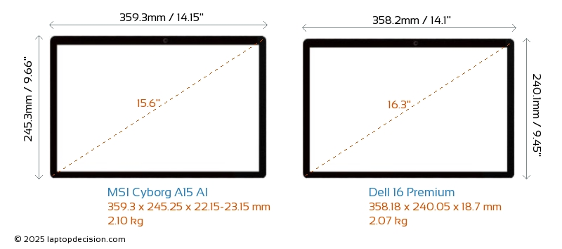 HDMI Cyborg A15 AI features an HDMI port (1x HDMI 2.1) for connecting to external monitors. 16 Premium does not have an HDMI port.