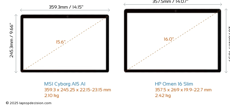 HDMIBoth Cyborg A15 AI and Omen 16 Slim feature an HDMI port (1x HDMI 2.1) for connecting to external monitors.
