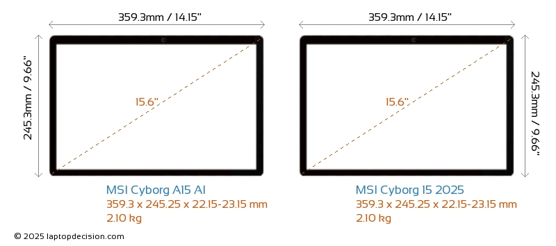 HDMIBoth Cyborg A15 AI and Cyborg 15 2025 feature an HDMI port (1x HDMI 2.1) for connecting to external monitors.