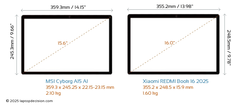 ThunderboltNeither Cyborg A15 AI nor REDMI Book 16 2025 has Thunderbolt port.