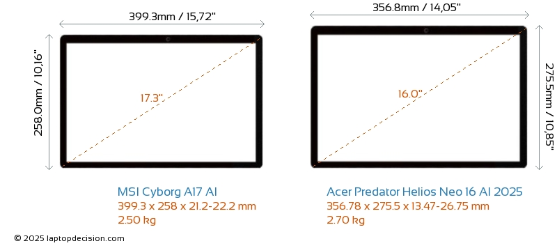 HDMIBoth Cyborg A17 AI and Predator Helios Neo 16 AI 2025 feature an HDMI port (1x HDMI 2.1) for connecting to external monitors.