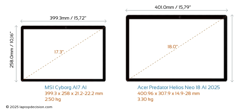 HDMIBoth Cyborg A17 AI and Predator Helios Neo 18 AI 2025 feature an HDMI port (1x HDMI 2.1) for connecting to external monitors.