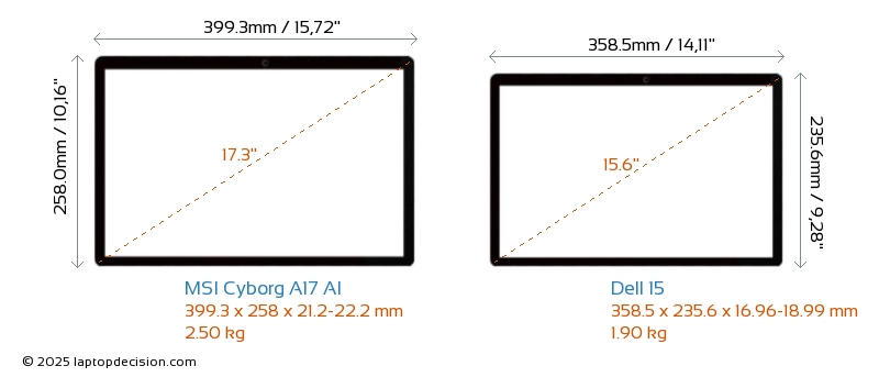 HDMIBoth Cyborg A17 AI and 15 feature an HDMI port. Cyborg A17 AI offers 1x HDMI 2.1, while 15 offers 1x HDMI 1.4.