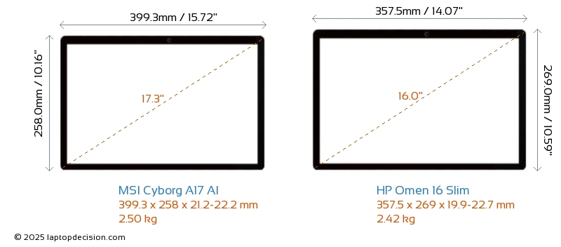 HDMIBoth Cyborg A17 AI and Omen 16 Slim feature an HDMI port (1x HDMI 2.1) for connecting to external monitors.