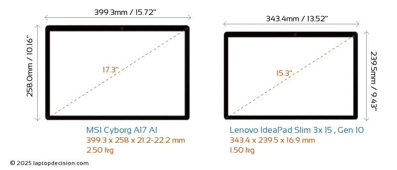 USBBoth Cyborg A17 AI and IdeaPad Slim 3x 15 , Gen 10 feature 2x USB 3.2 USB-A ports.Both Cyborg A17 AI and IdeaPad Slim 3x 15 , Gen 10 feature 1x USB 3.2 USB Type-C ports.