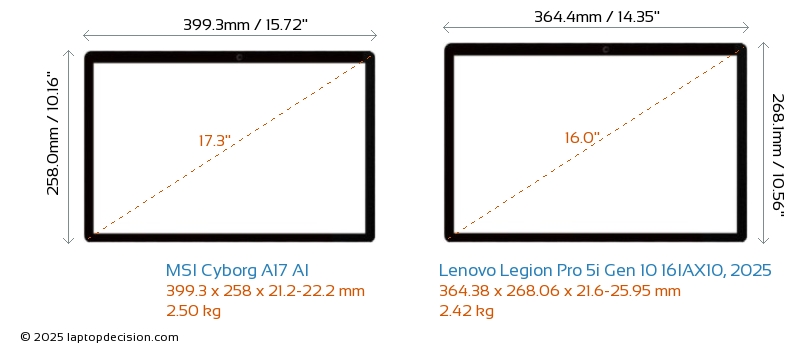 HDMIBoth Cyborg A17 AI and Legion Pro 5i Gen 10 16IAX10, 2025 feature an HDMI port (1x HDMI 2.1) for connecting to external monitors.