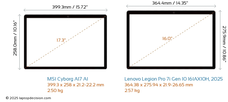 HDMIBoth Cyborg A17 AI and Legion Pro 7i Gen 10 16IAX10H, 2025 feature an HDMI port (1x HDMI 2.1) for connecting to external monitors.