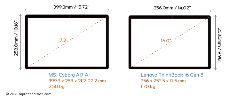HDMIBoth Cyborg A17 AI and ThinkBook 16 Gen 8 feature an HDMI port (1x HDMI 2.1) for connecting to external monitors.