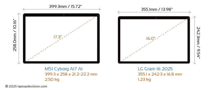 HDMIBoth Cyborg A17 AI and Gram 16 2025 feature an HDMI port (1x HDMI 2.1) for connecting to external monitors.