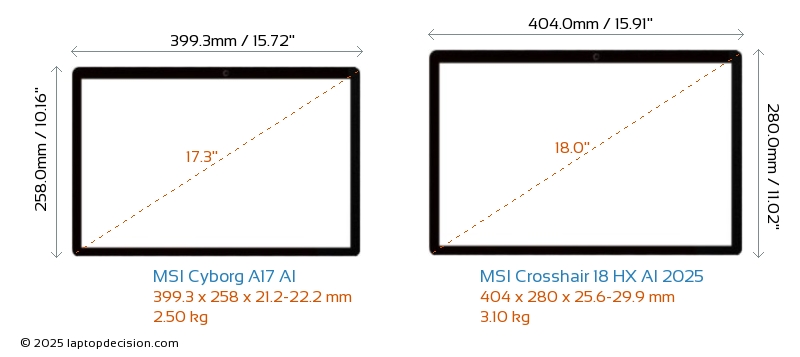 HDMIBoth Cyborg A17 AI and Crosshair 18 HX AI 2025 feature an HDMI port (1x HDMI 2.1) for connecting to external monitors.