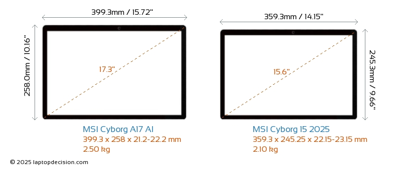 USBBoth Cyborg A17 AI and Cyborg 15 2025 feature 2x USB 3.2 USB-A ports.Both Cyborg A17 AI and Cyborg 15 2025 feature 1x USB 3.2 USB Type-C ports.