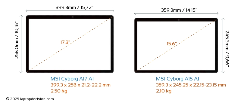 HDMIBoth Cyborg A17 AI and Cyborg A15 AI feature an HDMI port (1x HDMI 2.1) for connecting to external monitors.