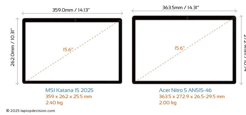 USBBoth Katana 15 2025 and Nitro 5 AN515-46 feature 3x USB 3.2 USB-A ports.Both Katana 15 2025 and Nitro 5 AN515-46 feature 1x USB 3.2 USB Type-C ports.