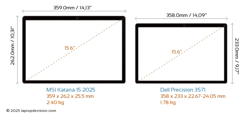 USBBoth Katana 15 2025 and Precision 3571 have USB-A ports. Katana 15 2025 has 3x USB 3.2 USB-A ports, while Precision 3571 has 2x USB 3.2 USB-A ports.Both Katana 15 2025 and Precision 3571 have USB Type-C ports. Katana 15 2025 has 1x USB 3.2 USB Type-C ports, while Precision 3571 has 2x USB 3.2 USB Type-C ports.