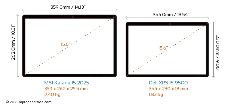ThunderboltXPS 15 9500 is equipped with Thunderbolt 3 port. Katana 15 2025 does not have Thunderbolt port.