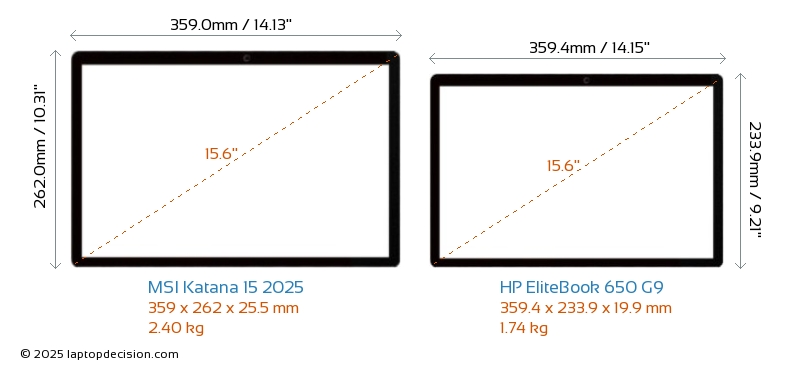 Audio JackBoth Katana 15 2025 and EliteBook 650 G9 are equipped with a 3.5mm Audio Jack, providing seamless connection to headphones and speakers.