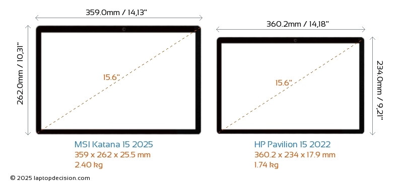 HDMIBoth Katana 15 2025 and Pavilion 15 2022 feature an HDMI port (1x HDMI 2.1) for connecting to external monitors.