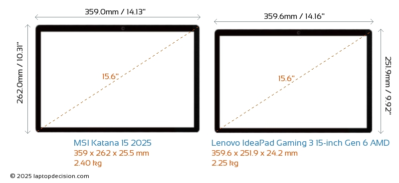 Audio JackBoth Katana 15 2025 and IdeaPad Gaming 3 15-inch Gen 6 AMD are equipped with a 3.5mm Audio Jack, providing seamless connection to headphones and speakers.