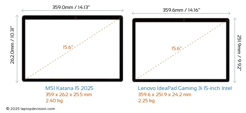 HDMIBoth Katana 15 2025 and IdeaPad Gaming 3i 15-inch Intel feature an HDMI port. Katana 15 2025 offers 1x HDMI 2.1, while IdeaPad Gaming 3i 15-inch Intel offers 1x HDMI 2.0.