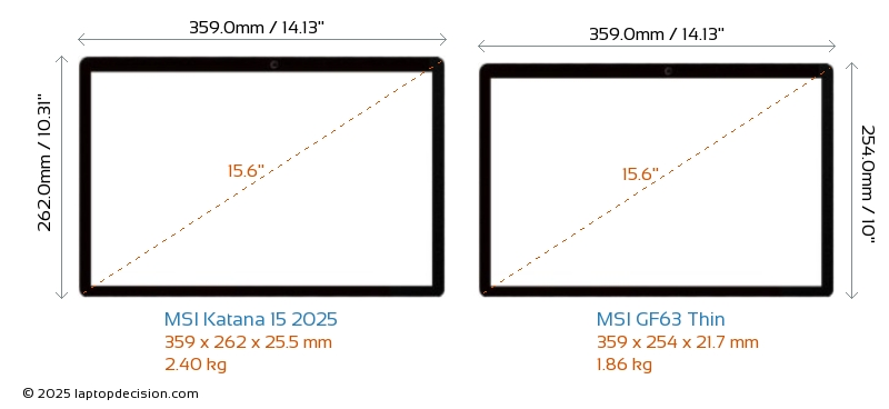 USBBoth Katana 15 2025 and GF63 Thin feature 3x USB 3.2 USB-A ports.Both Katana 15 2025 and GF63 Thin feature 1x USB 3.2 USB Type-C ports.