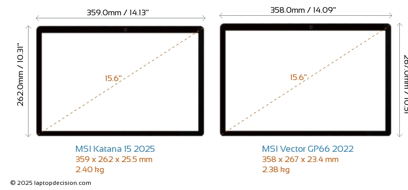 USBBoth Katana 15 2025 and Vector GP66 2022 feature 3x USB 3.2 USB-A ports.Both Katana 15 2025 and Vector GP66 2022 feature 1x USB 3.2 USB Type-C ports.