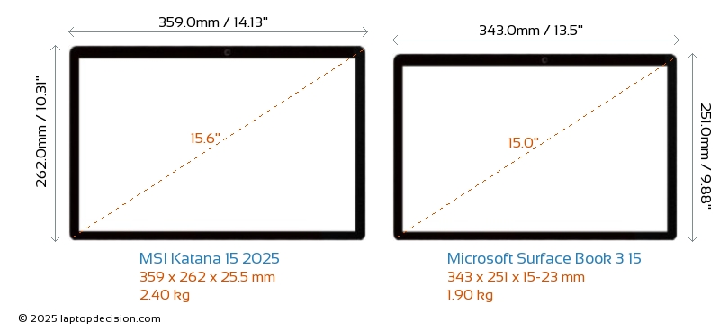 ThunderboltNeither Katana 15 2025 nor Surface Book 3 15 has Thunderbolt port.