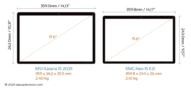 USBBoth Katana 15 2025 and Neo 15 E21 feature 3x USB 3.2 USB-A ports.Both Katana 15 2025 and Neo 15 E21 feature 1x USB 3.2 USB Type-C ports.